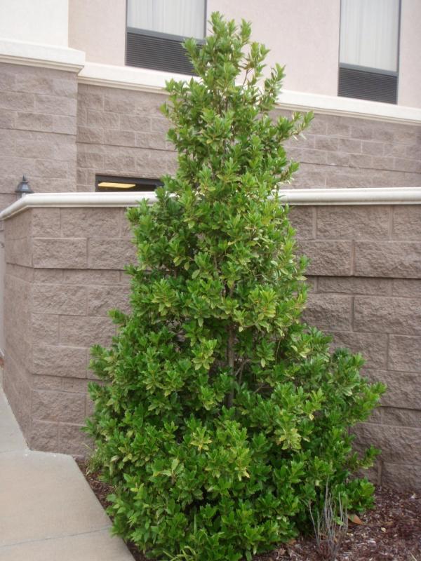 Unique oakleaf shaped leaves that start bronze to burgundy and turn green. Evergreen. Upright pyramidal habit. ‘Perfect’ flowers mean that they don’t need a pollinator. Pleasing orange-red berries. Dense foliage - makes an excellent screen or hedge, at foundations, and in containers.