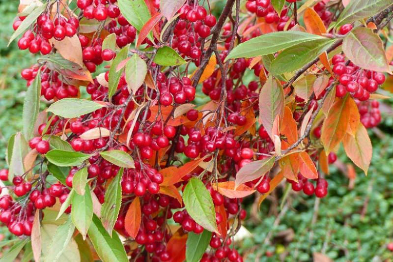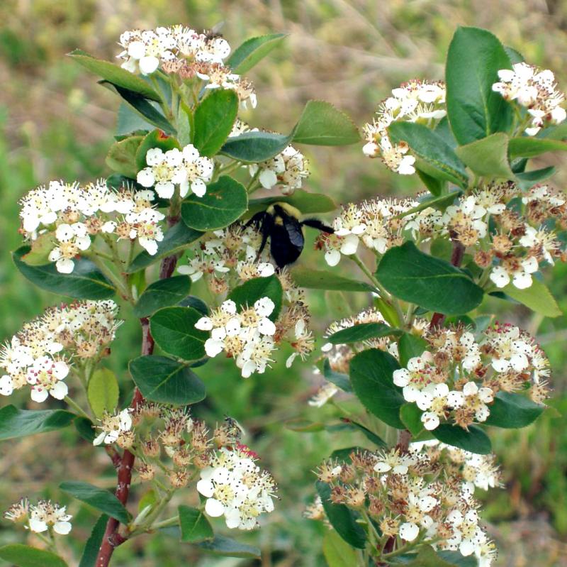 WNC Native with multi-season interest. White to pink flowers turn to edible tart red berries - fantastic in jams and jellies. Green foliage turns vibrant red in fall. A versatile and excellent shrub for rain gardens, erosion control, and wildlife habitat.