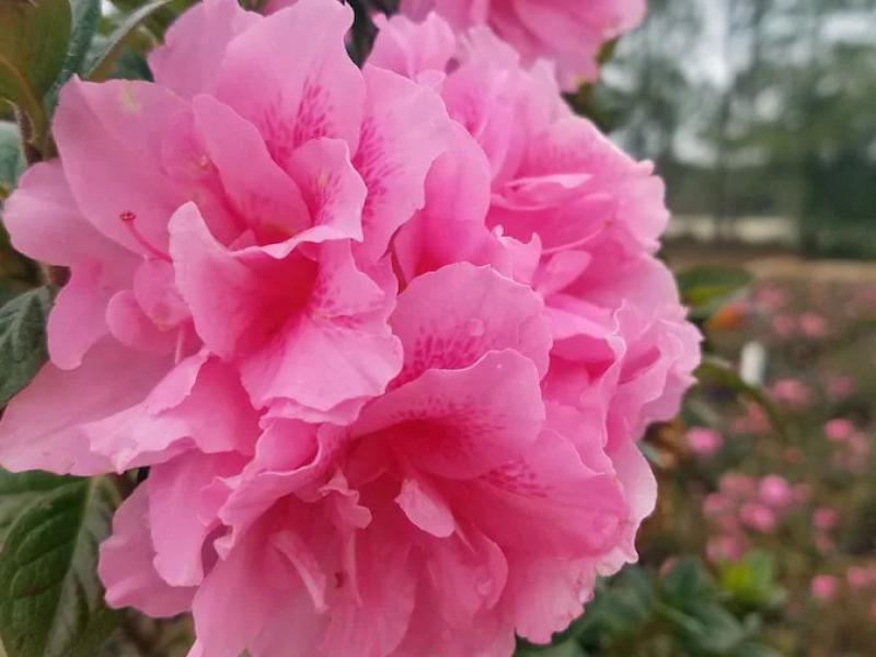 Pink, semi-double, 2.5” blooms that attract butterflies and hummingbirds. Dark green foliage turns shades of purple in the fall. Blooms spring through fall. Works well in containers on the patio, singly in the shrub border or as a low hedge. Evergreen.