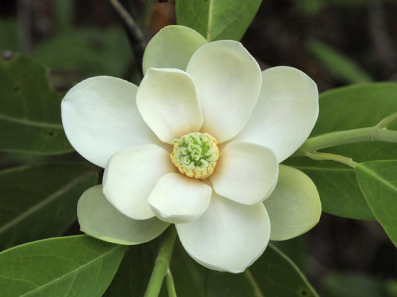 Wonderful NC Native with creamy-white vanilla-lemon scented flowers in spring and summer. Bright scarlet-red seeded fruit ripens in late summer attract birds. Loose, open upright habit. A lovely, graceful small patio or specimen tree. Plant in a protected area. Pleasing green foliage. Semi-evergreen - may be evergreen during mild winters.