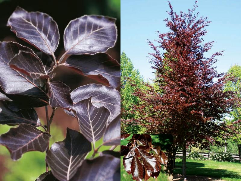 Large glossy purple leaves turn copper in fall - most purple of the Beeches. Beautiful smooth gray bark provides winter interest. Nuts are edible. Great specimen or shade tree. Tolerates deer browse. Deciduous.