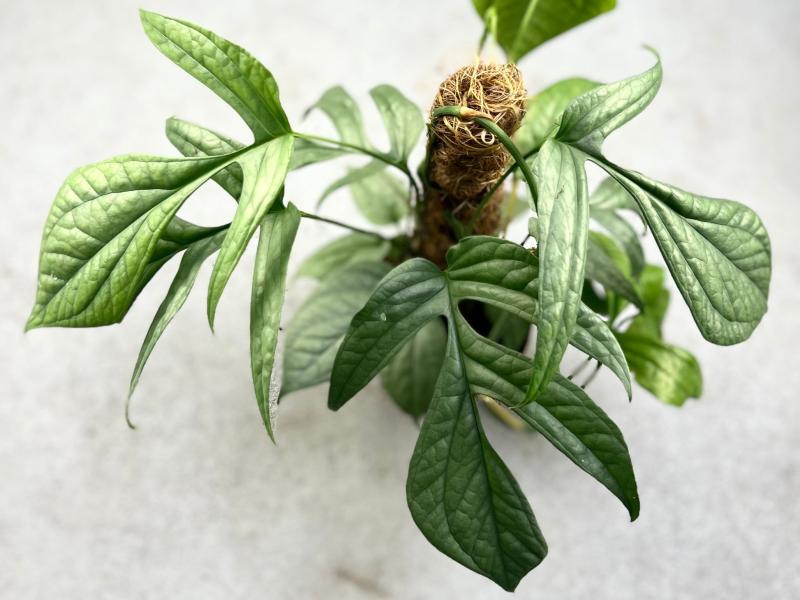 Philodendron Amydrium Silver Amydrium medium ‘Silver’ Lovely silvery-blue foliage on this robust climber in the Aroid family. Native to rainforests in Borneo. Prefer bright to medium indirect light, high to medium humidity, and well-draining soil. Grow on a pole for intriguing fenestrated mature foliage - up to 4’T x 1’W. Keep above 55°F.