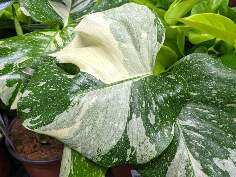 Embrace the extraordinary with Monstera 'Thai Constellation', the dreamy, celestial beauty of the house plant world, a must-have plant for collectors! Features marble-like, glossy green foliage with stunning fenestrations, covered in creamy, cosmic white marbling and splatters - resembling the Milky Way✨. Unlike the Monstera Albo, Thai Con has stable variegation. This means their foliage won’t revert to pure green as they age. Medium humidity. Moist, well draining soil. Grow on a moss pole to reach maximum height. Slow grower. Despite their rarity, these plants are easy to grow - low maintenance. Monstera 'Thai Constellation' will eventually grow delicious, fragrant, edible fruit. Native to tropical forests in southern Mexico to Panama. ❤️RCN Staff Favorite - we love these! Keep above 65°F. 8+’T x 3+’W, leaves 1’W x 1’L