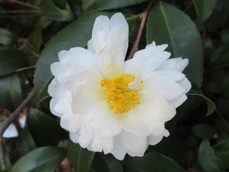 An abundance of gorgeous, anemone to formal double snow white flowers with rays of yellow emerging from the center are produced fall into winter - a welcome sight in the garden when flowers are so rare.