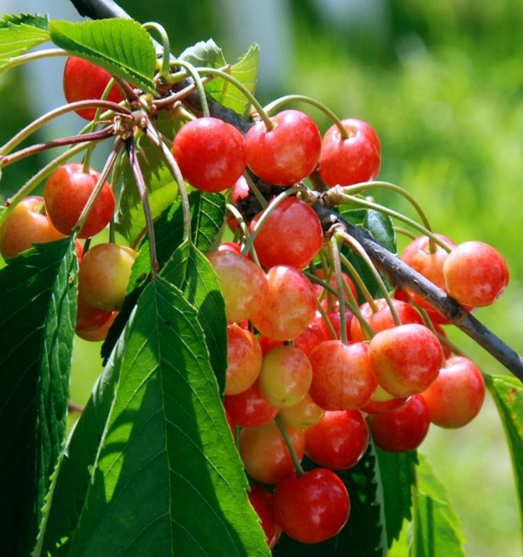 Rosy-gold cherries with sweet yellow flesh on a disease resistant tree. Heavy yields, excellent flavor, and crack resistant skin. Best for fresh eating. Disease resistant to: brown rot, bacterial canker, and black knot. Self-pollinating. Will pollinate other sweet cherries. 700-800 chill hours. Zones 4-7.