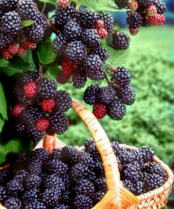 These large, juicy-sweet, blue-black berries grow abundantly in summer. Enjoy the firm, nutritious berries as a snack or instant dessert; and they're superb in a pie, mousse or sorbet. These highly productive thornless blackberry plants are semi-upright, and easy to maintain.