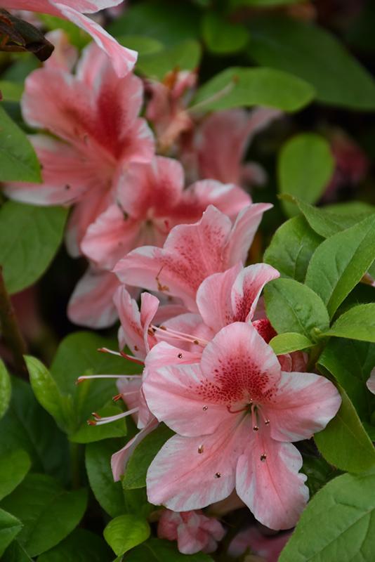 Covered in stunning clusters of salmon trumpet-shaped flowers with white overtones and a scarlet blotch at the ends of the branches from mid spring to early fall. Glossy, evergreen foliage. Prefers morning sun, afternoon shade, and moist, well-draining soil. Named after a famous Azalea breeder.
