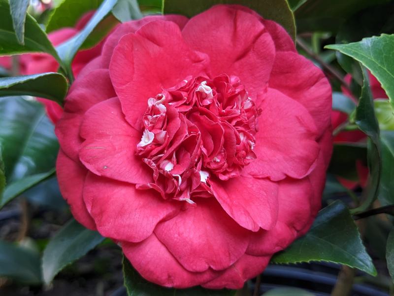 Fragrant, currant-red, anemone-form flowers 3-4” diameter. Upright and vigorous, with gorgeous evergreen foliage, makes an excellent hedge, screen, or foundation plant. Bred in NC. Prefers morning sun and afternoon shade. Protect from winter winds.