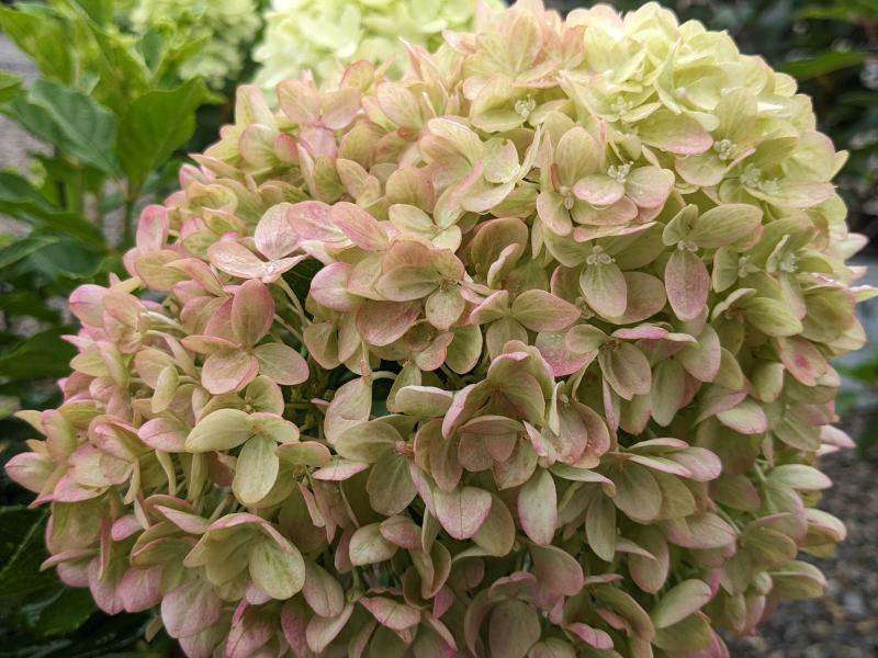 Wonderful! Huge, lime-green flowers that turn pink to burgundy on strong, sturdy stems and a compact, mounding habit. Dwarf form of ‘Limelight’. Bold massed, can be grown in containers, lovely cut flower. Award winning.