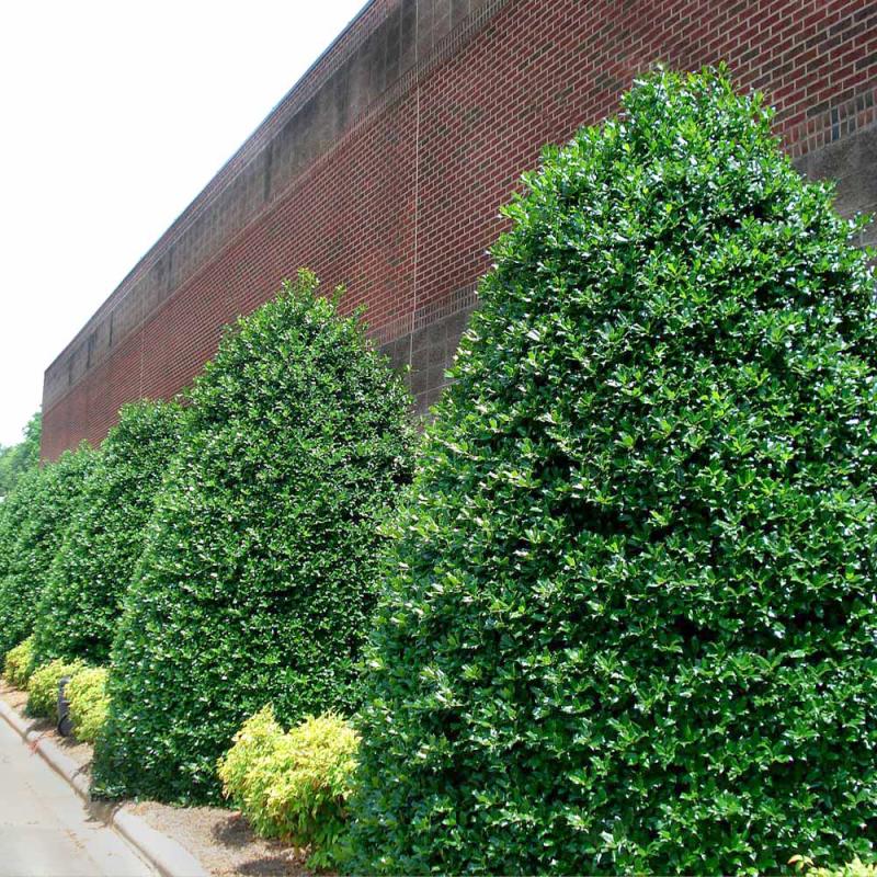 Get ready to fall in love with this legendary beauty! Not only is Nellie R. Stevens gorgeous, she is tough and resilient. Vigorous, with a broad pyramidal tree-like form, dense branching, and lustrous dark green, leathery evergreen foliage. Orange-red berries. For increased berry set, her ideal mate is Edward J. Stevens. However, a male Ilex cornuta will also work. Excellent hedge, screen, or specimen.