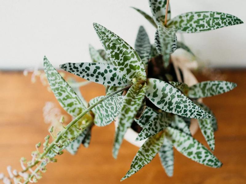 RARE. Thick, slender olive-green leaves are attractively splotched with pewter, with purple underneath. Bulbous perennial plant native to South Africa. Extremely low maintenance.