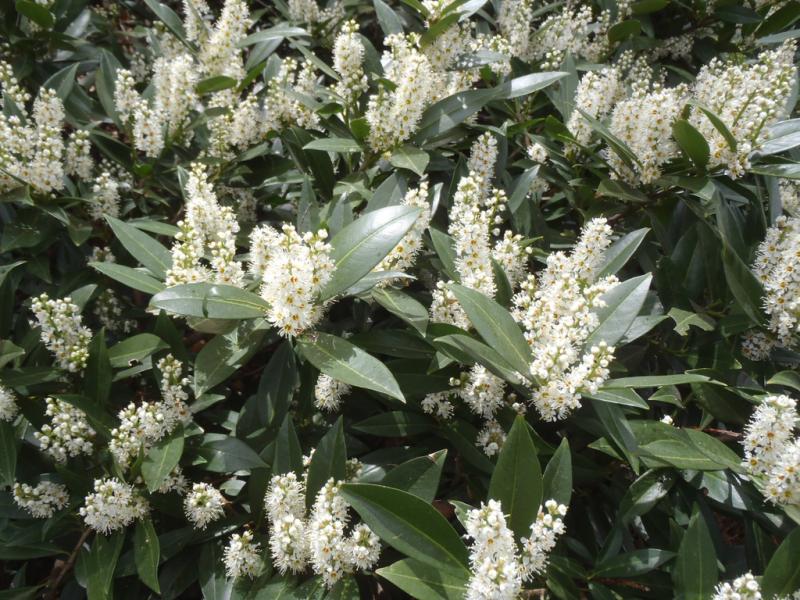 A dwarf form of English laurel. This lush growing, compact, evergreen shrub offers year-round interest with glossy dark green leaves and showy, fragrant, creamy white flower spikes, followed by small black ornamental fruit. Excellent as a hedge or privacy screen. Best grown in moist, organically rich, well-drained soils in full sun to full shade.