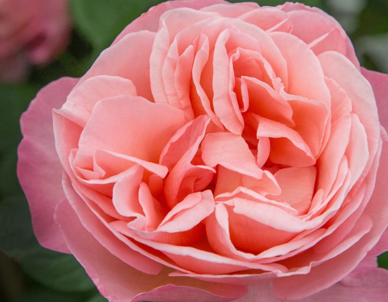 Lush tones of rose pink with orange-pink shading, depending on temperature. Large, 4.5-5” long lasting blooms with 48-68 fragrant petals each. Medium green, leathery foliage.