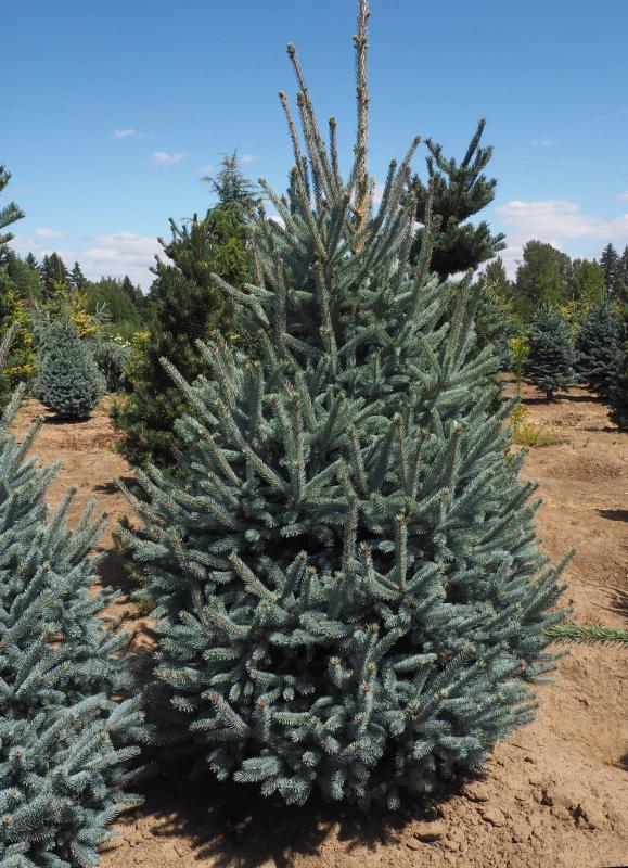 ‘Whiskey Blue Hills’ is a blue selection of Black Hills Spruce. It has a strong pyramidal, semi-compact habit with a fast growth rate - up to 1' a year. Very cold hardy with attractive powdery blue needles, it is a great alternative to Colorado Blue Spruce. Use as a specimen or as an evergreen hedge - makes a colorful windbreak.