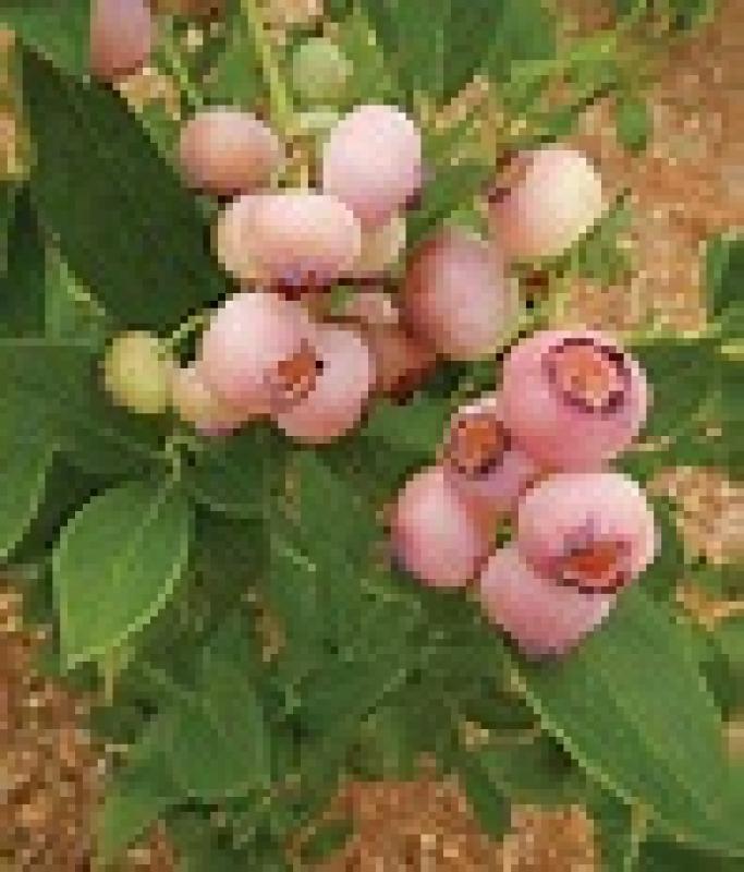 Delightful, tasty light pink fruit on these half high blueberries! The moderately crisp berries have a balanced, sweet-tart flavor with moderate aroma. Grow these sturdy plants as you would other blueberries - they love rich, acidic, moist, well-draining soil.