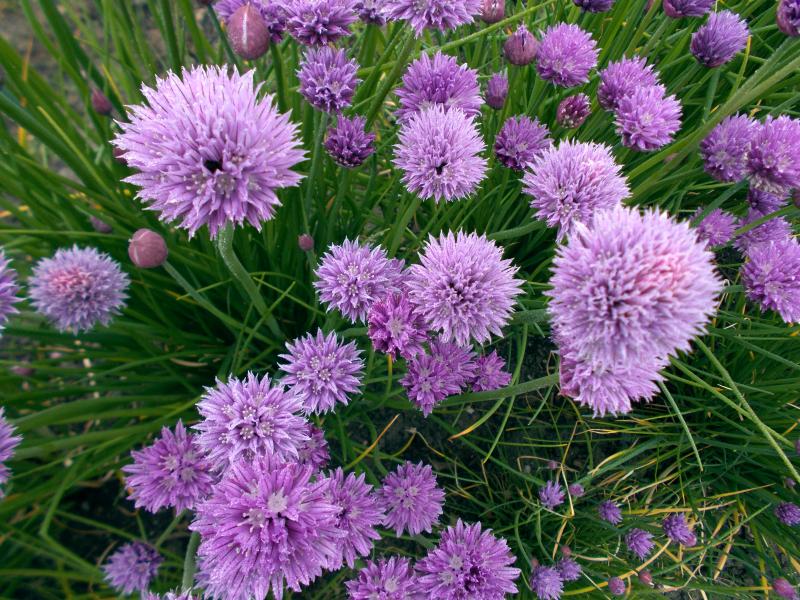 Perennial. Small lavender flowers form a round head above the hollow, tubular leaves that add a delicious yet mild onion flavor to soups, salads and potato dishes, blooms late spring - early summer.