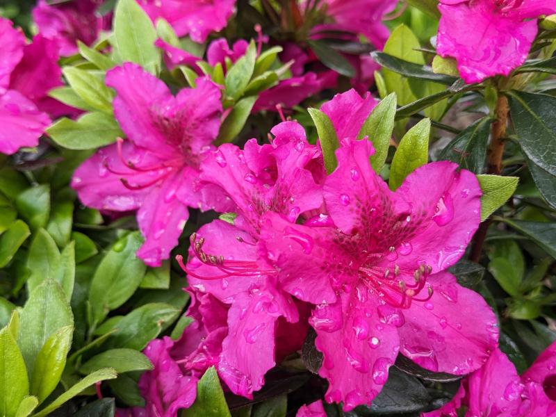 A stunning profusion of single, fuchsia-colored blooms blankets the lush, dark green glossy foliage in the spring. Evergreen. Early to mid season. A premier flowering shrub for use as a hedge, in borders or massed.