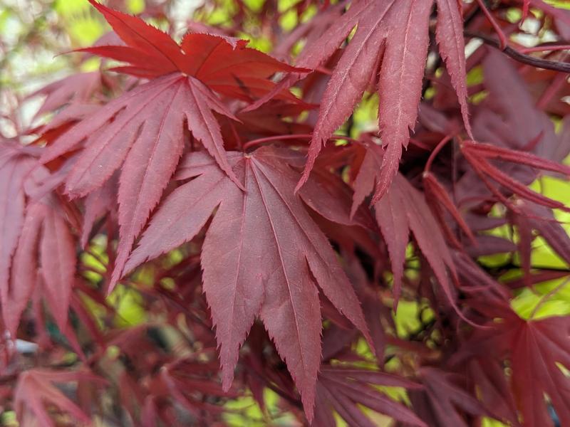 Bright red foliage have a luminescent quality and the best color retention of all the upright red palmatums. An intense fiery glow appears in fall, especially in full sun. Well-branched, with a moderate growth habit and a broad crown at maturity. Highly sought after - wonderful specimen. Good heat and sun tolerance.