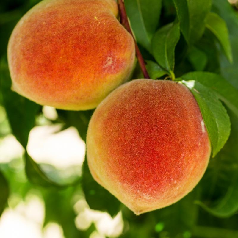 Firm flesh and almost fuzzless. A beautiful golden-yellow, all-purpose peach great for fresh eating, cooking, canning, freezing. Tree is hardy and blooms late to avoid spring frost. Freestone. Ripens in August. Self-pollinating, but best yields when planted near another variety.