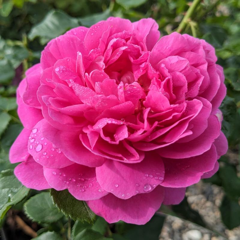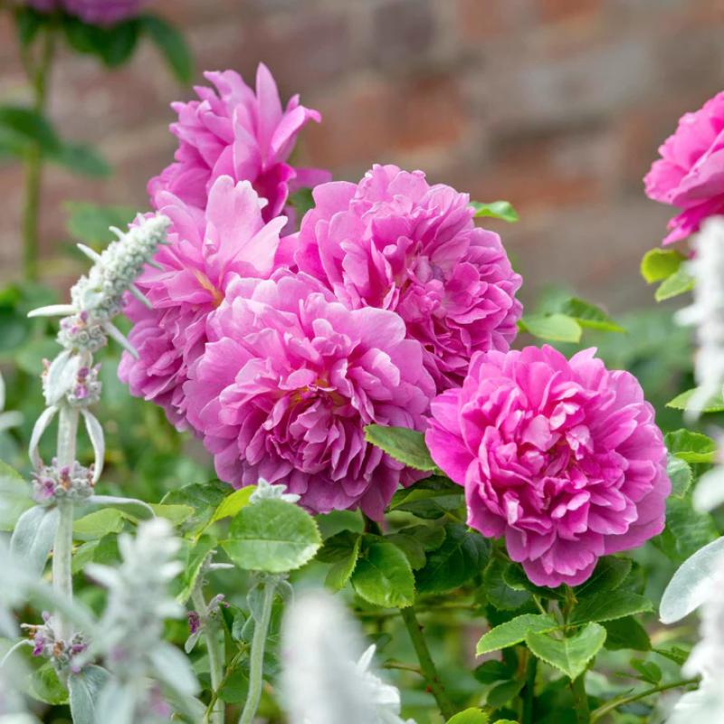 Young flowers are deep pink, almost red, fading to pure rich pink. Narrow petals are unusually substantial, with a hint of yellow on their undersides. Held in large, fragrant clusters with up to 85 petals per beautiful bloom. A particularly healthy variety; it forms a bushy, upright shrub with thick, succulent, highly polished foliage.