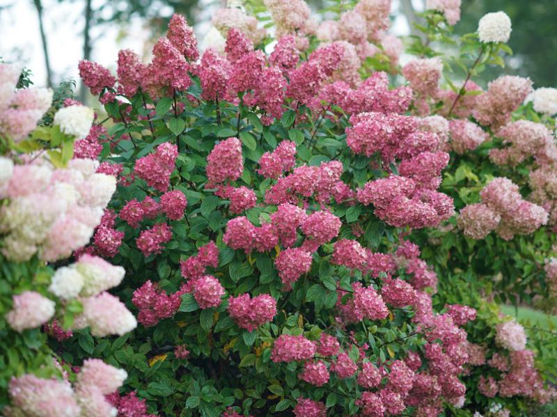 Upright panicles are packed with stunning florets which transform from pure white in summer to rich pomegranate-pink late summer to fall. Exceptional shrub for foundation planting, border, or cutting garden.