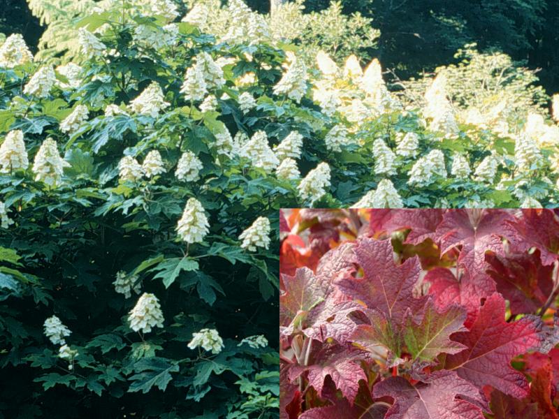 Deeply lobed, oak-like green foliage that turns a brilliant crimson in fall. Gorgeous creamy-white flowers early-mid summer. A large, bold, handsome selection for foundations or borders. Deciduous. NC Native species.