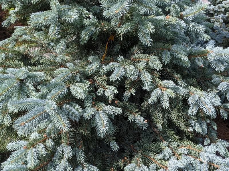 Gorgeous! 'Baby Blue' is an exceptionally beautiful Colorado Blue Spruce. Maintains tight, compact growth habit. Bright silvery blue color that intensifies with age. Needles radiate evenly giving branches a full appearance. Medium to slow growth rate, can live 80+ years. A superb specimen, and excellent living holiday tree. Selection from a wild US native. Rugged, but needs well-draining soil. Evergreen.
