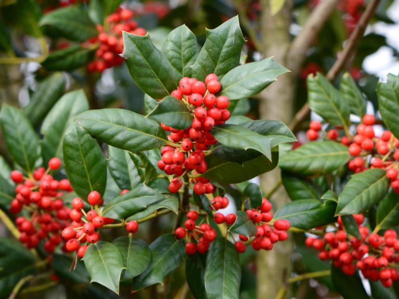 Get ready to fall in love with this legendary beauty! Not only is Nellie R. Stevens gorgeous, she is tough and resilient. Vigorous, with a broad pyramidal tree-like form, dense branching, and lustrous dark green, leathery evergreen foliage. Orange-red berries. For increased berry set, her ideal mate is Edward J. Stevens. However, a male Ilex cornuta will also work. Excellent hedge, screen, or specimen.