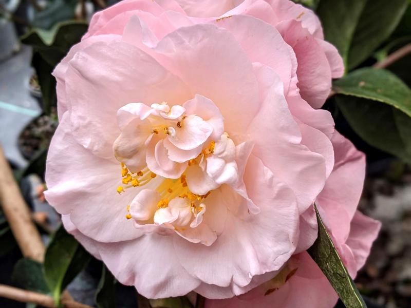 Lovely 4-5” shell-pink semi-double blooms against dense dark green evergreen foliage. Bred in NC. Prefers morning sun and afternoon shade. Protect from winter winds. Slow to moderate growth rate.