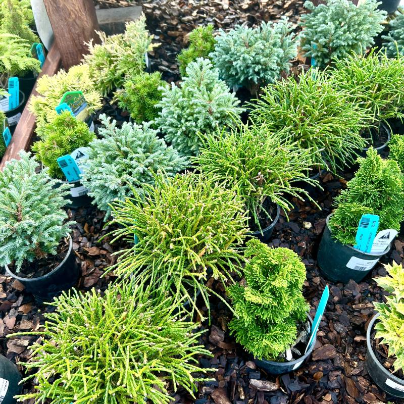 We have a mix of dwarf conifers and other ornamental plants to be used creatively in containers, rock gardens, miniature theme gardens, and other landscapes where space is limited.