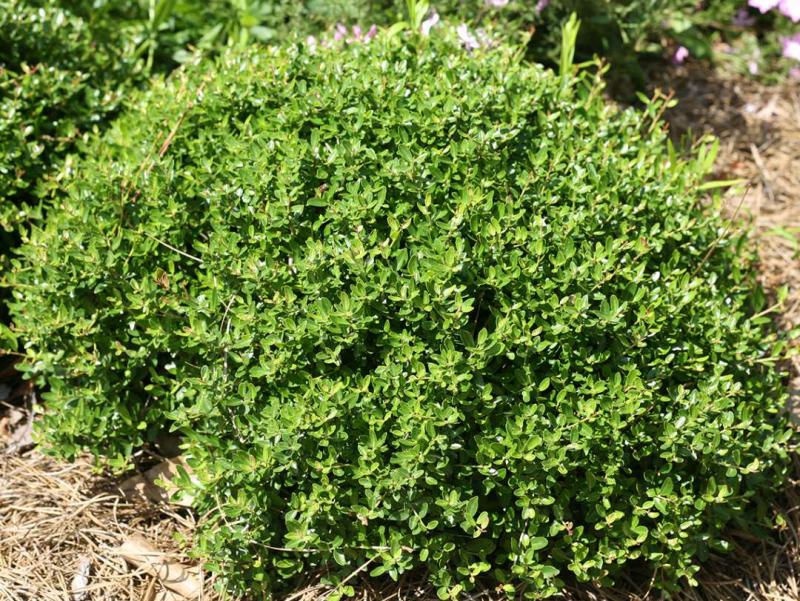Yaupon Holly - Nana Ilex vomitoria 'Nana' A dwarf, compact holly with small shiny leaves that contain caffeine. Produces red berries on previous year’s growth. Makes a gigantic mounded cushion if not pruned. Plant in a protected area, with well-draining soils. NC Native. 5’T x 8’ W. Zone 7-10.