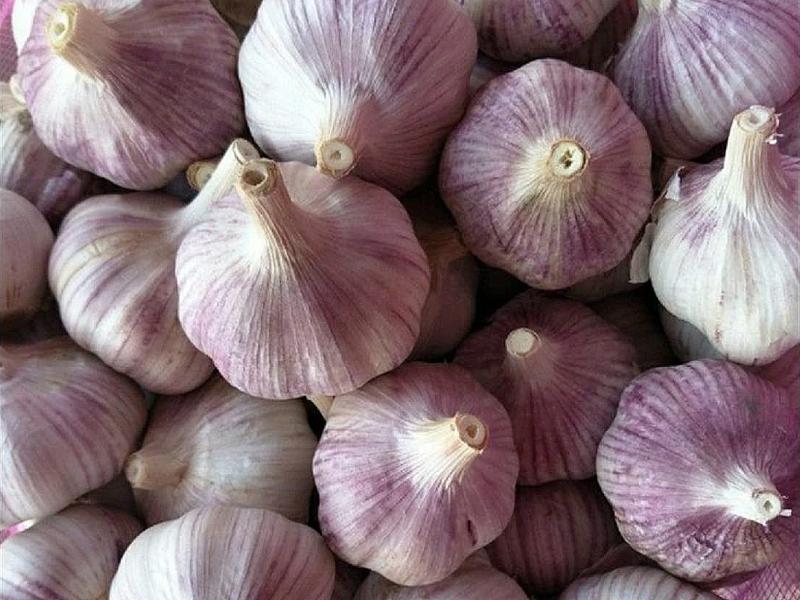 Sweet and spicy garlic. Large bulbs with 7 to 9 creamy cloves are wrapped in striped purple skins. Well adapted to late summer heat, matures 5-10 days before most other garlic. Lasts 7-9 months properly stored.