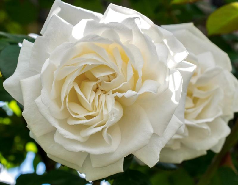 Pure white Climbers bloom heavily in the spring and will re-bloom throughout the season. They have exceptionally clean foliage and a very full flower, similar to English roses, with 50-60 petals per bloom. May be more shrub-like in cooler climates.