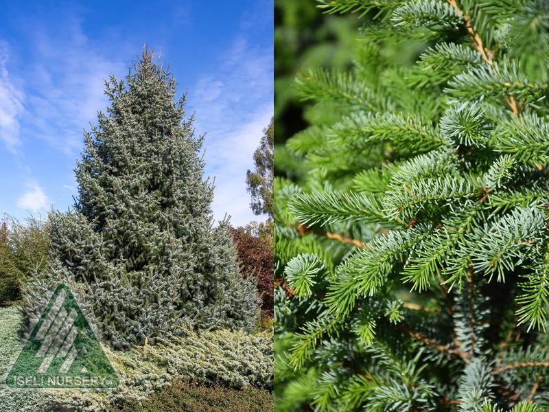 RARE. Silver Blue Serbian Spruce has classic two-tone needles, green with silvery-blue undersides. The branches sweep upward exposing the undersides of the needles and reflecting against the top side to display a bright silver-blue against a green background. Plant with enough space around it so that it can develop into an attractive and colorful anchor in the garden.