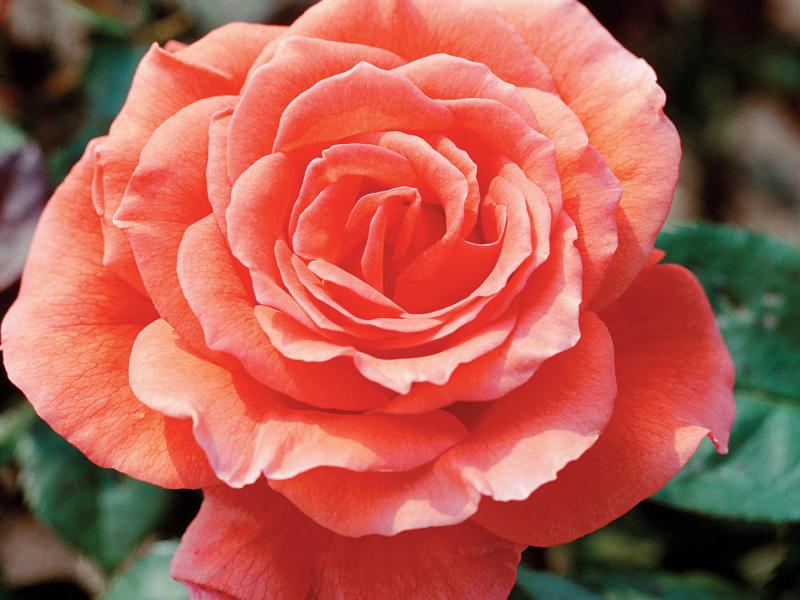 Iridescent, coral-orange-red hues on large 5” double blooms, with 30-35 petals each. Good cut flower and heat tolerance. Glossy green foliage. Prefers winter protection. A classic from 1963.