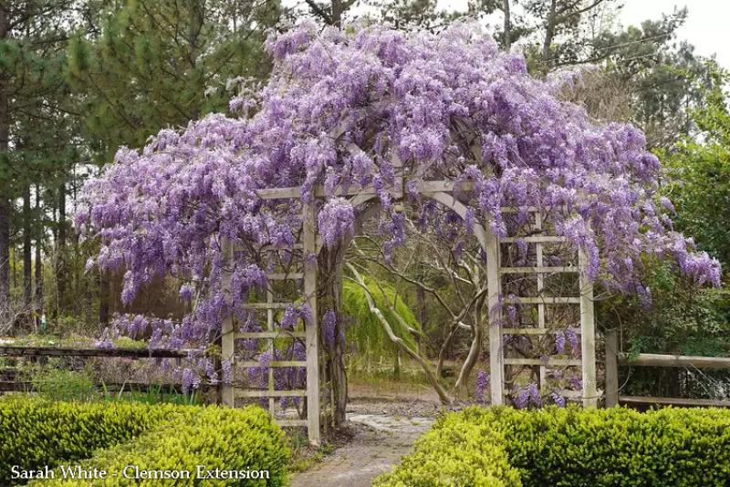 All the romance of Wisteria - but in the WNC native form! These gorgeous twining vines start to bloom at an early age, so you don't have to wait for incredible beauty. Lovely 4-6" purple racemes arch gracefully downwards. Train on a sturdy arbor, pergola, gazebo, trellis, or fence. 'Amethyst Falls' is slower growing than the wild type and easy to maintain.