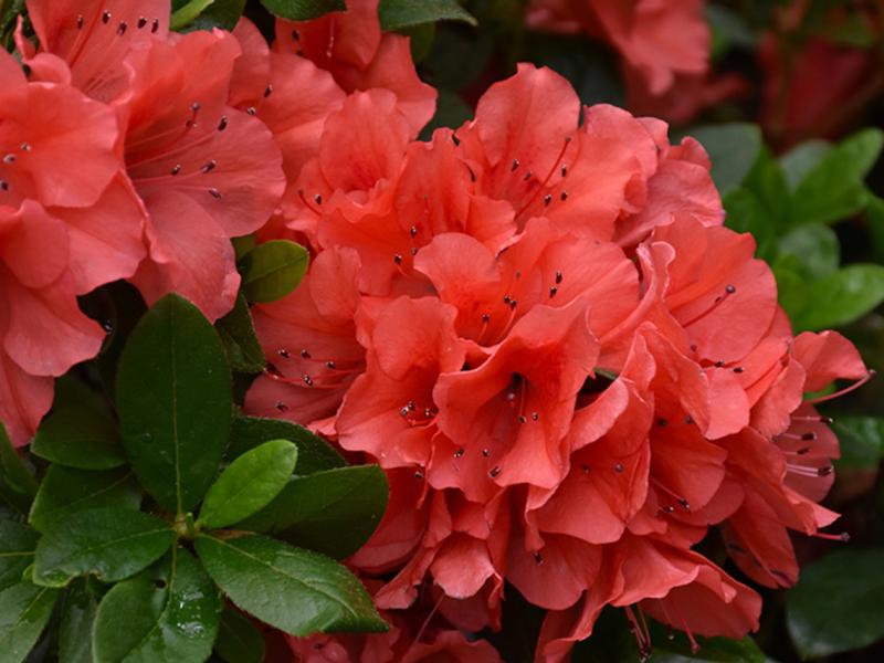 The blooms of this Encore variety pay homage to the vivid orange-reds of spectacular sunsets. With its deep green foliage, Autumn Sunset makes a statement in any garden setting. The abundant eye-catching blooms, in hues of orange, are produced in spring and fall and sporadically during summer.
