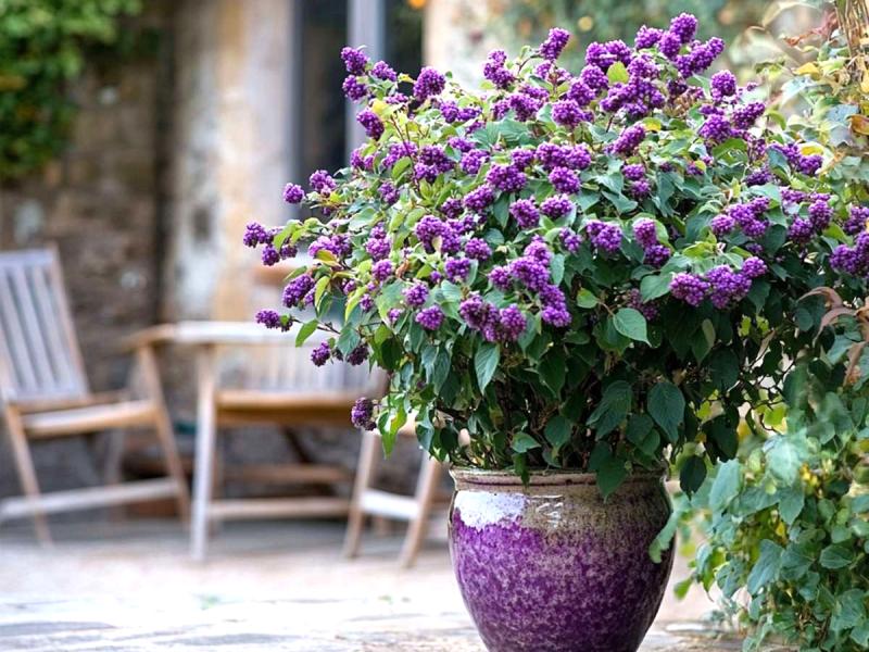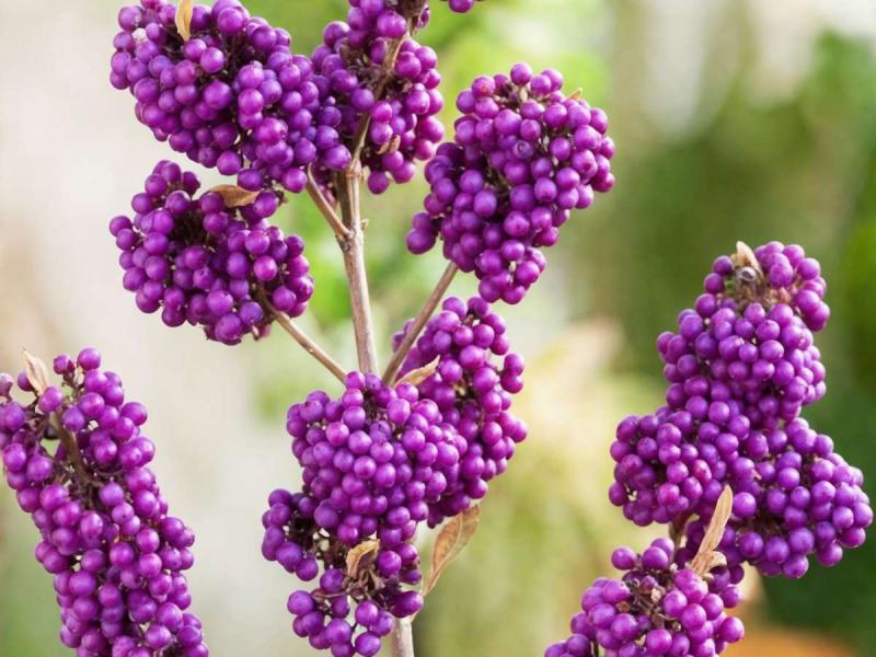 Extremely showy cultivar with numerous violet bead-like berries on arching branches. In spring, the foliage emerges bronze-purple, turning to dark green in summer, then gold-purple in fall. Species is native to western and central China.