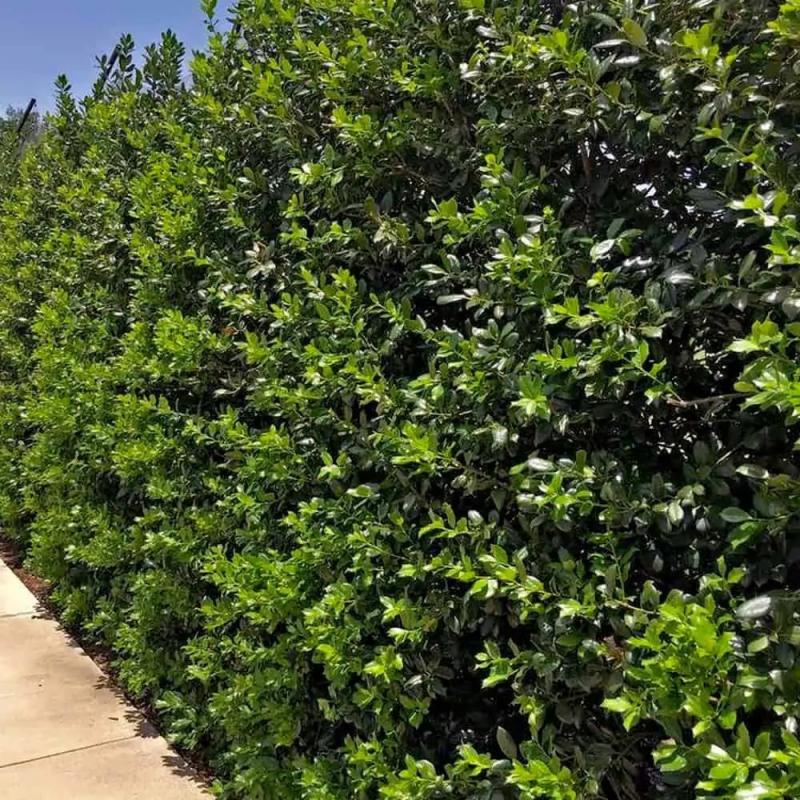 Get ready to fall in love with this legendary beauty! Not only is Nellie R. Stevens gorgeous, she is tough and resilient. Vigorous, with a broad pyramidal tree-like form, dense branching, and lustrous dark green, leathery evergreen foliage. Orange-red berries. For increased berry set, her ideal mate is Edward J. Stevens. However, a male Ilex cornuta will also work. Excellent hedge, screen, or specimen.