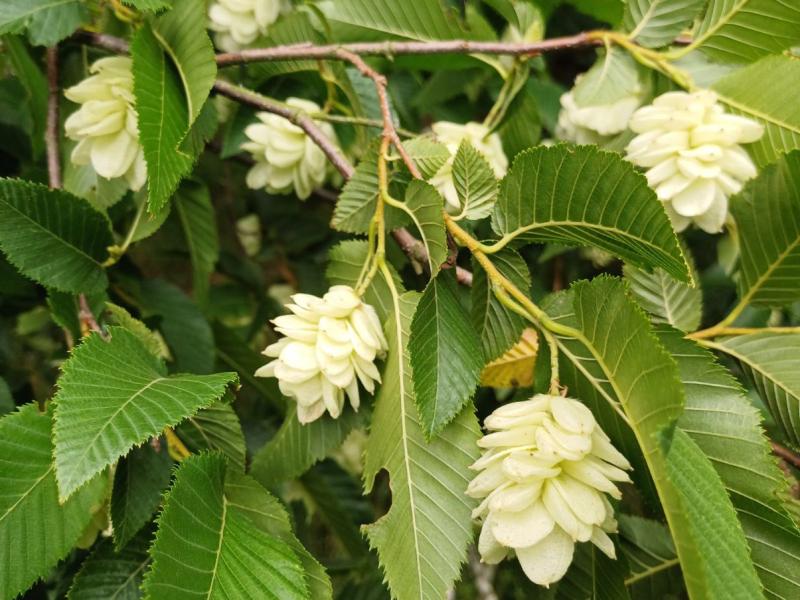 The fruiting clusters resemble hops. The tiny seeds are edible. Wildlife enjoy snacking on this tree, especially Ruffed Grouse - a chunky native bird with the hilarious nickname of Thunder Chicken. Ostrya trees can handle what wildlife have to dish out.