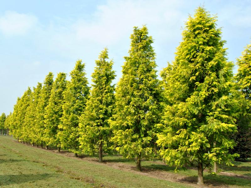 Spectacular deciduous conifers with golden foliage with orange to reddish brown fall color. Beautiful bark. Use as a specimen or in large groupings.