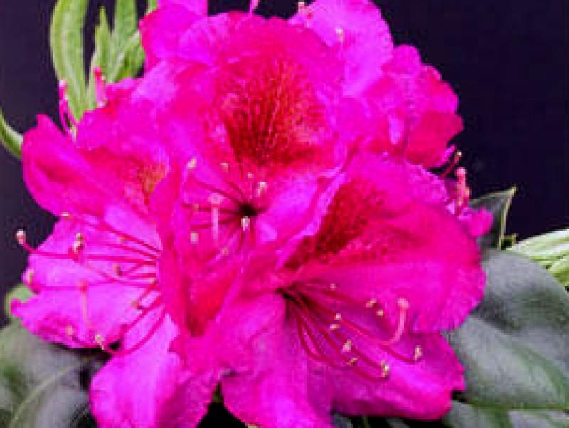 Steady, reliable plants with purple trusses and sporting a bright yellow eye. Glossy, dark-green leaves with downward turning edges combine to make a truly nice shrub. They love acidic, moist, well-draining soil. Late midseason to late blooms.