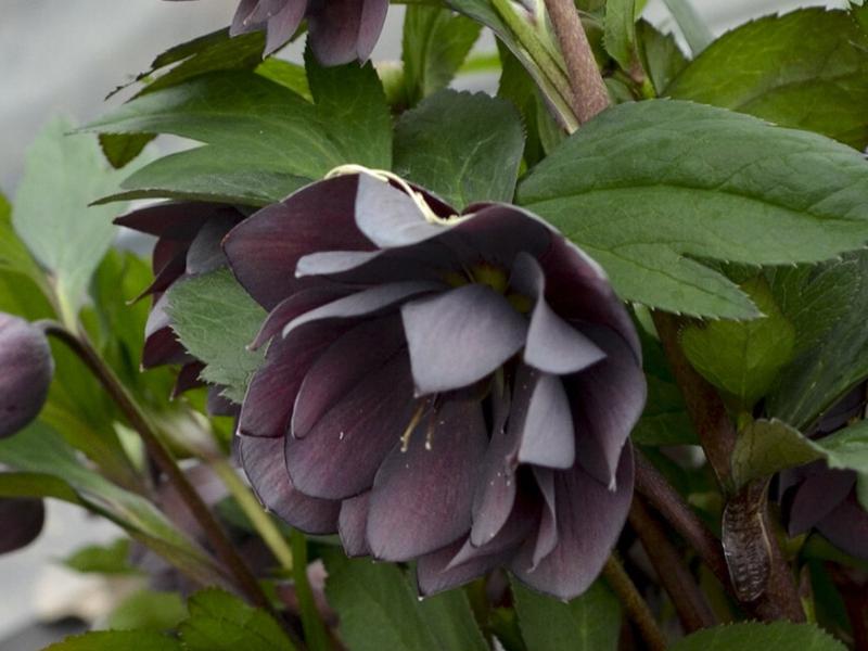 Oh so dark and handsome!! We are SO excited to be able of offer these rare plants - the stunning dark purple to shale gray double 3" blooms are a sight to behold in winter. Mature plants will produce 40-60 blooms per plant - these are must have plants for collectors!