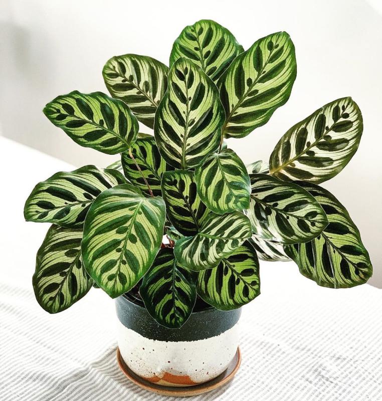 Stunning!! These beautiful, striking Calatheas catch the eye with their light green foliage covered in gorgeous pattern similar to a peacock's tail. One of their interesting features is how much their leaves move - there are many timelapse videos that show them waving their leaves around all day! Note the position the leaves are in during the morning and then later in the day - they definitely move.
